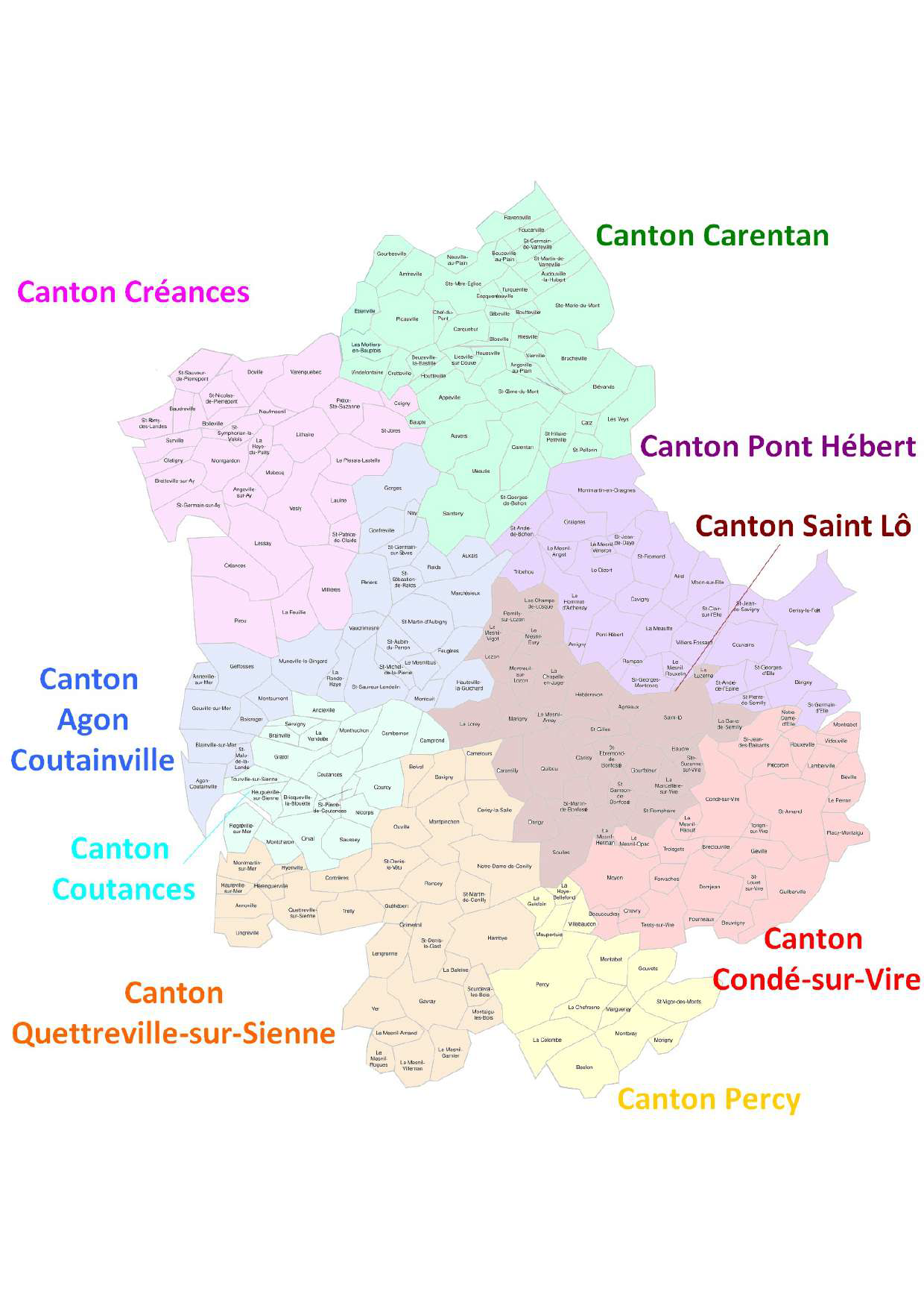 Secteur du Centre Manche et découpage par Cantons